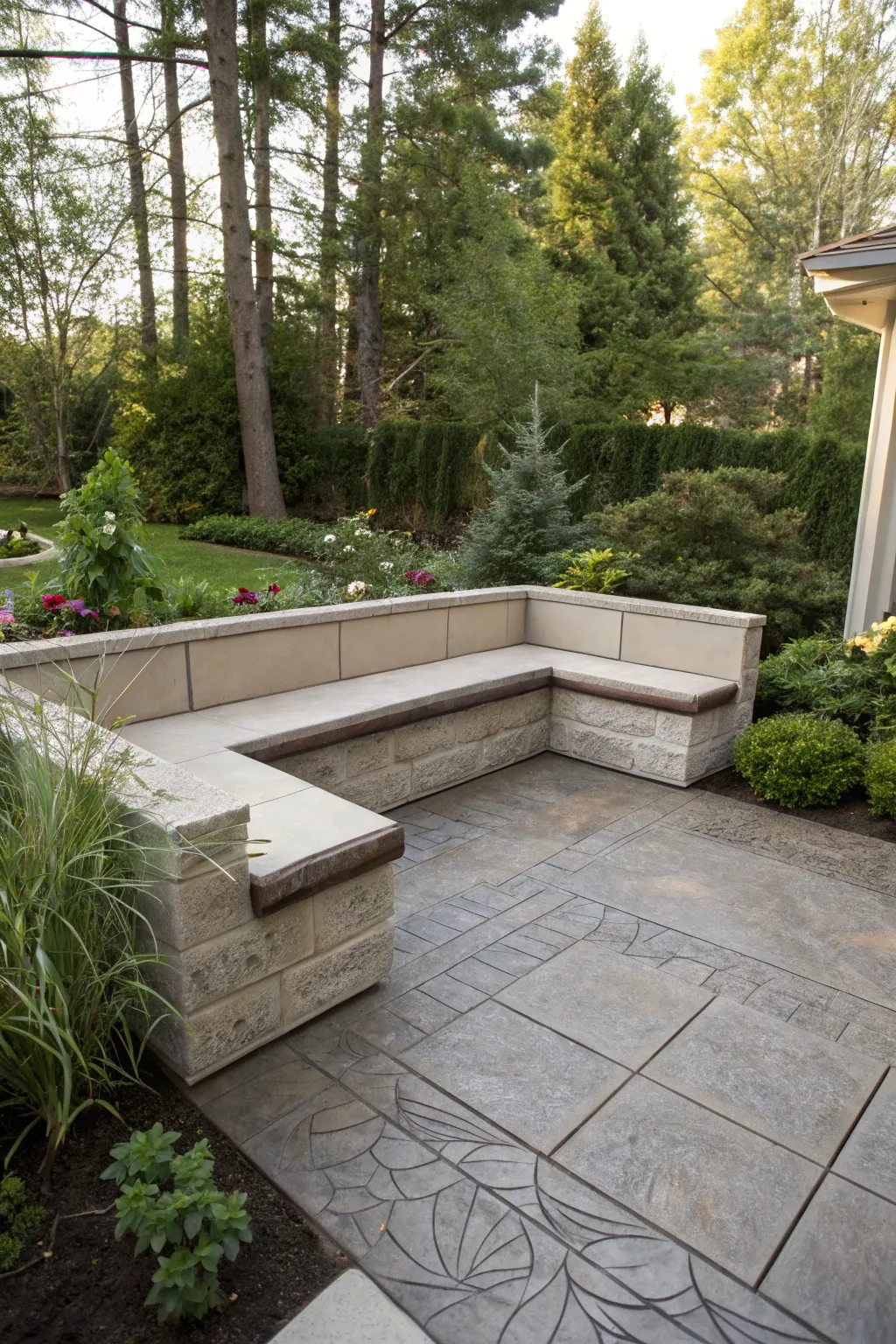 A built-in seat can furnish both seating and a streamlined aesthetic. I’ve engaged this feature to seamlessly pair function with form in patio designs.